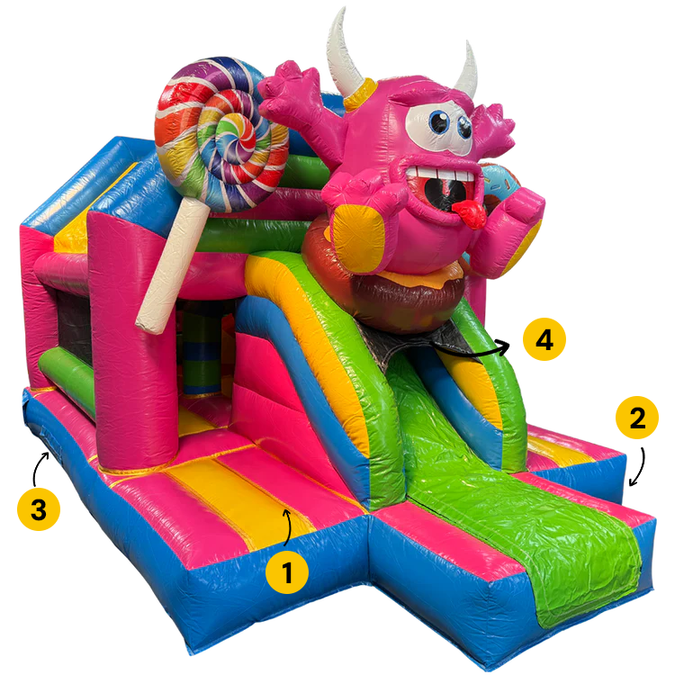 Dit vernieuwde Combo Midi-model combineert twee glijbanen met speelse hindernissen voor een extra avontuurlijke springbeleving.
